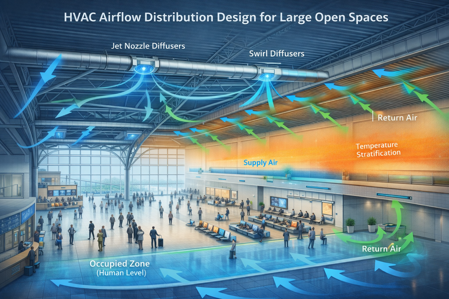 Airflow distribution in large open spaces is not a product selection exercise—it is a system-level design decision that integrates architecture, structure, HVAC equipment, controls, and operational strategy.