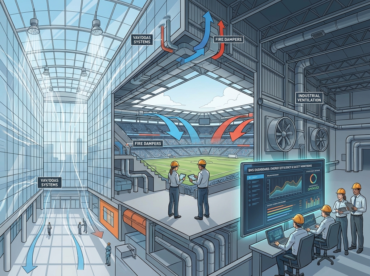 YAOAN Ventilation delivers engineered HVAC solutions for mega projects, combining energy-efficient airflow, fire and smoke safety, and intelligent building automation. Our systems ensure comfort, compliance, and cost-effective operation for airports, hospitals, stadiums, industrial complexes, and large commercial buildings.