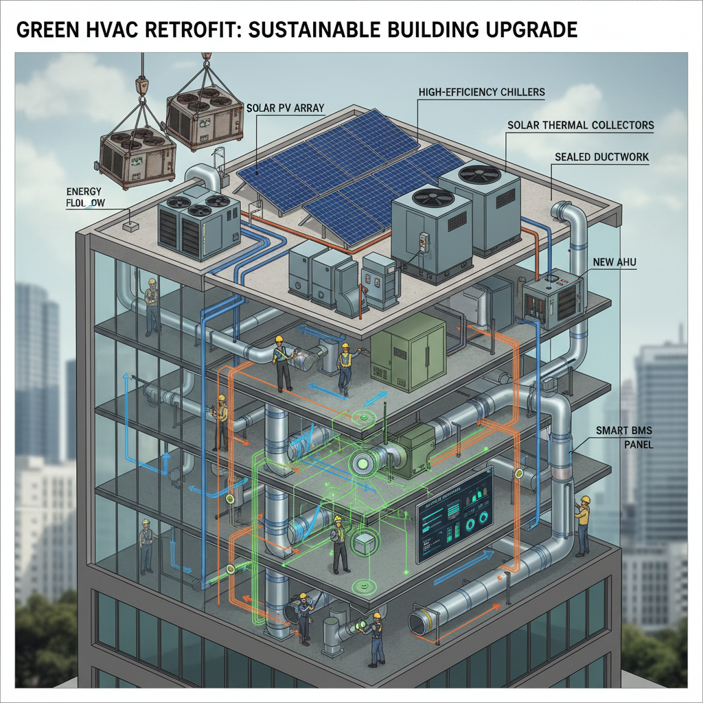A green retrofit upgrades existing HVAC systems to improve energy efficiency, reduce emissions, and integrate renewable energy and smart controls.