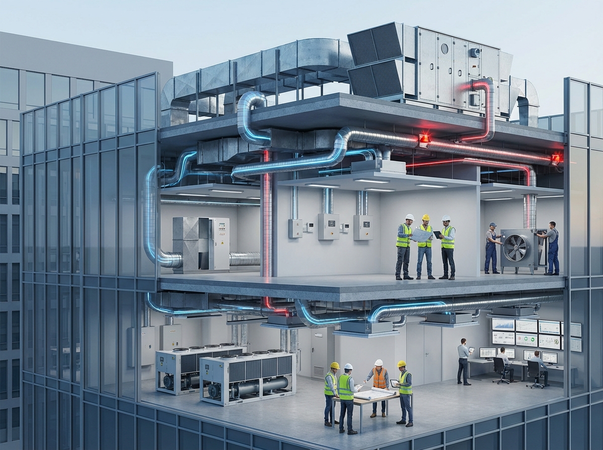 - Scheduled inspections for fans, filters, dampers, and sensors