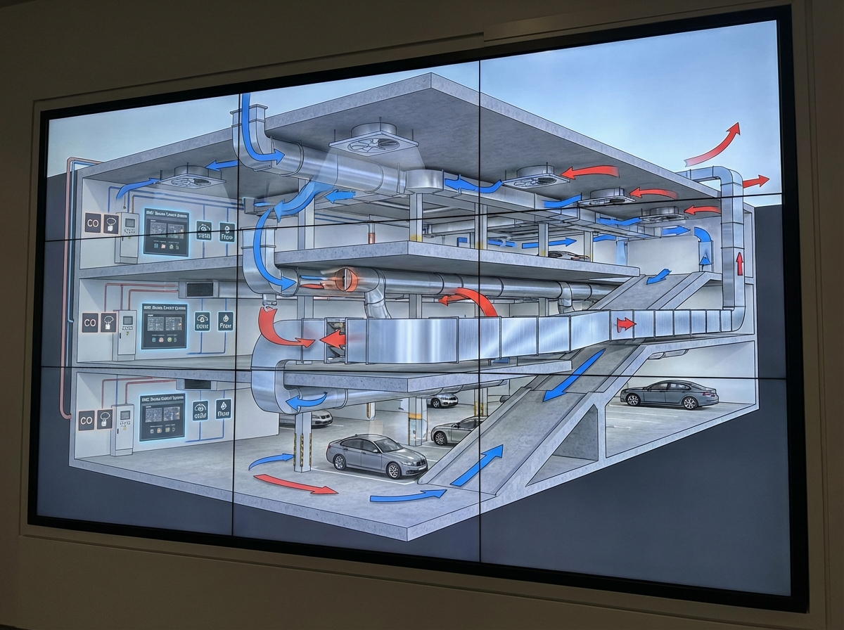 YAOAN provides engineered solutions for multi-level parking, combining high-capacity fans, fire dampers, and automated controls for effective smoke management.